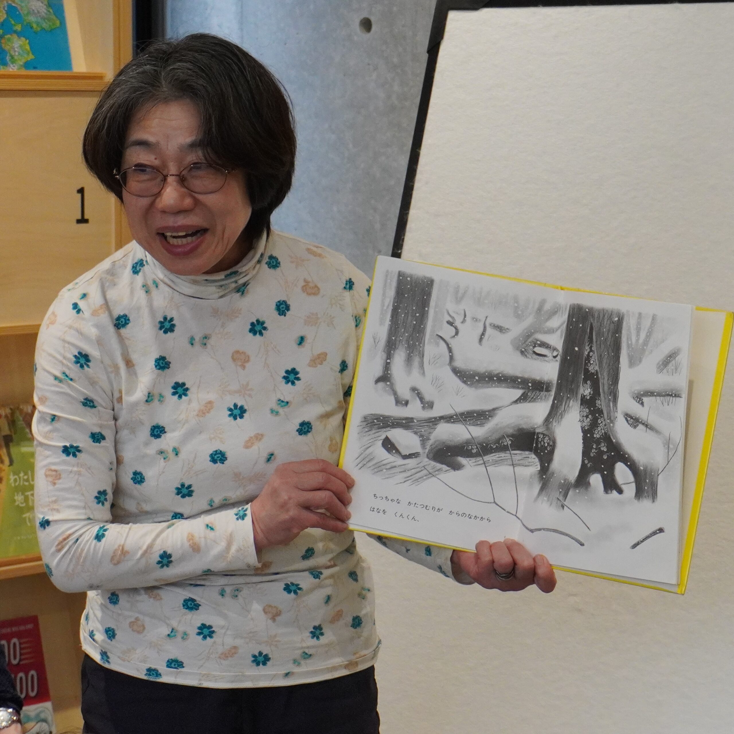 絵本『あやちゃんのうまれたひ』では、新しい命を迎える家族の物語に、ぬくもりに包まれるように大人も子どもも静かに聞き入ってくれました。