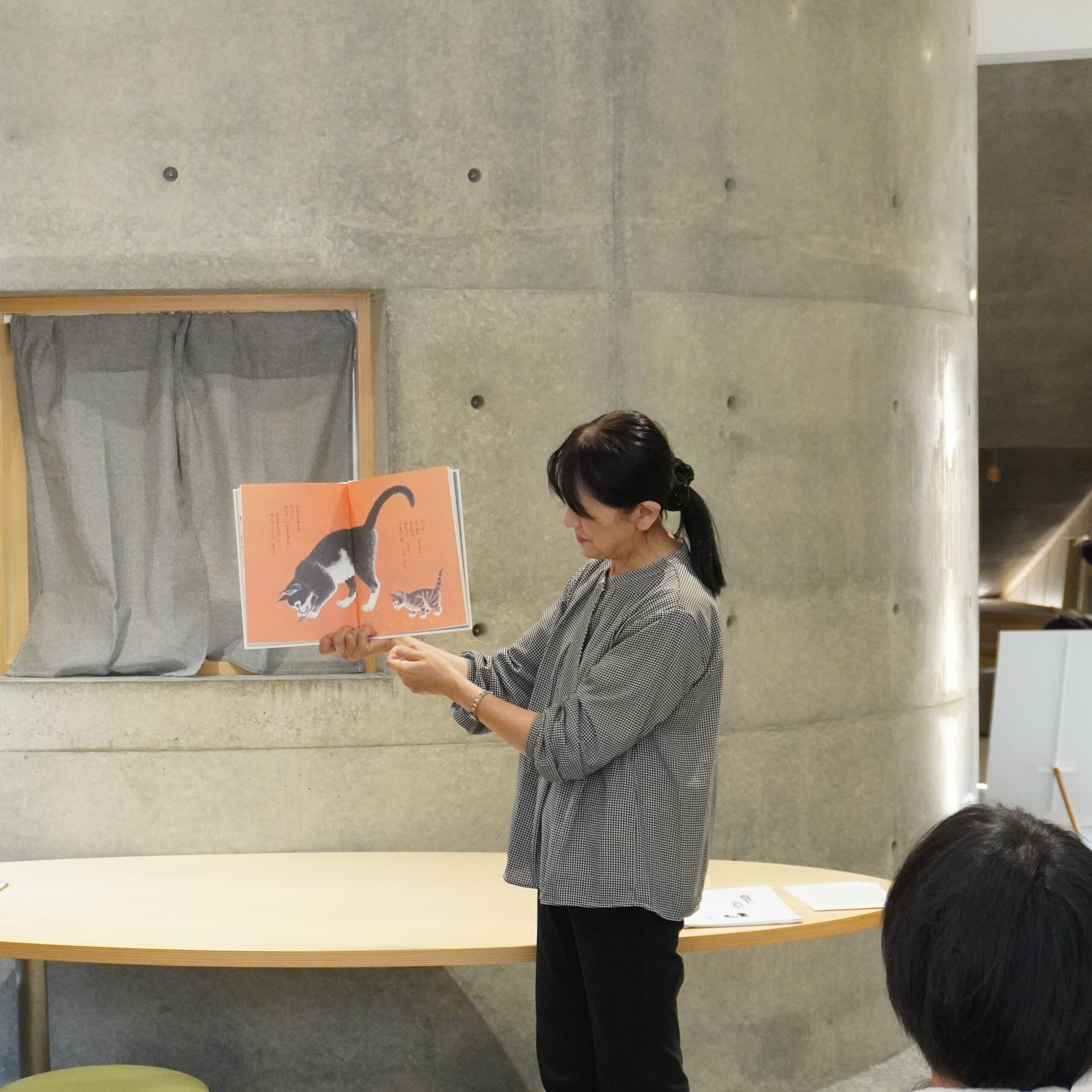 おはなし会は、猫の夢の詩「ひるねのゆめ」でスタートしました。次の絵本『どこからきたの こねこのぴーた』では、虫やモグラなどに出会う子猫の小さな冒険の様子を真剣に見守りました。