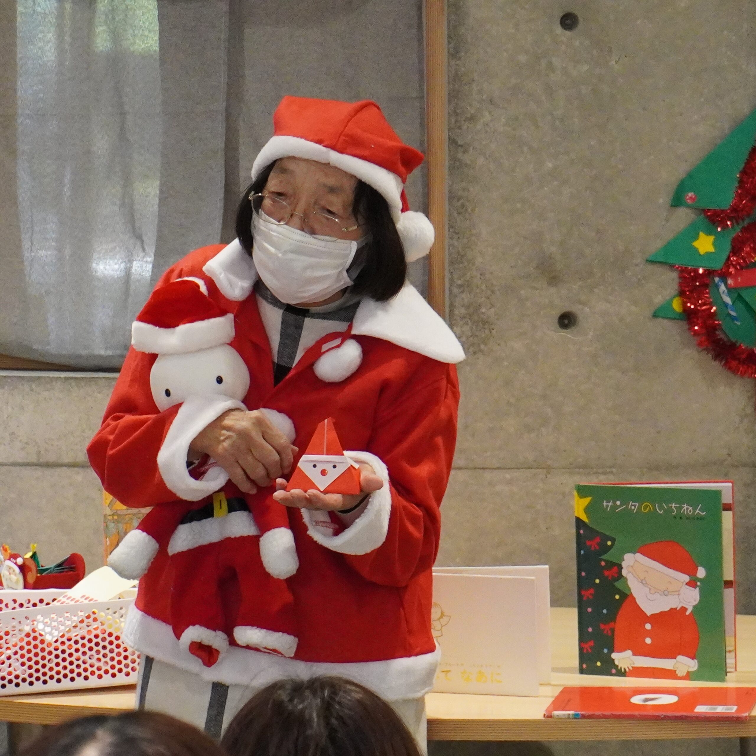 今回は“おはなしの会「なないろのにじ」”さんが素敵なサンタクロース姿で登場!サンタ帽でおめかししたうさこちゃんと共に、賑やかに会がスタートしました。