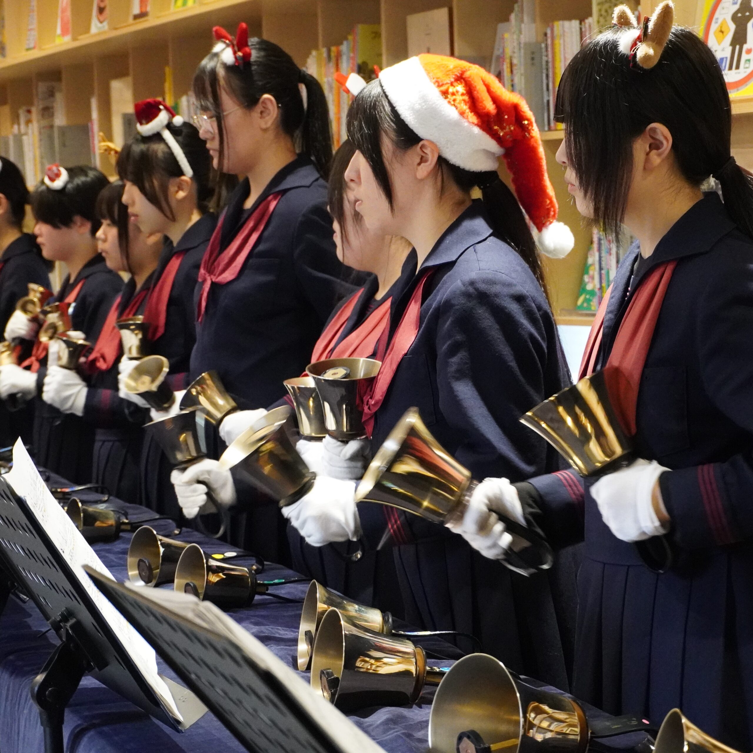 こども本の森 熊本では、12/21にルーテル学院中学・高等学校ハンドベル部「ソーヌス・アンジェリクス」の皆様をお招きし、クリスマス企画「“親子で楽しむ”クリスマス・ハンドベル演奏会」を開催しました。