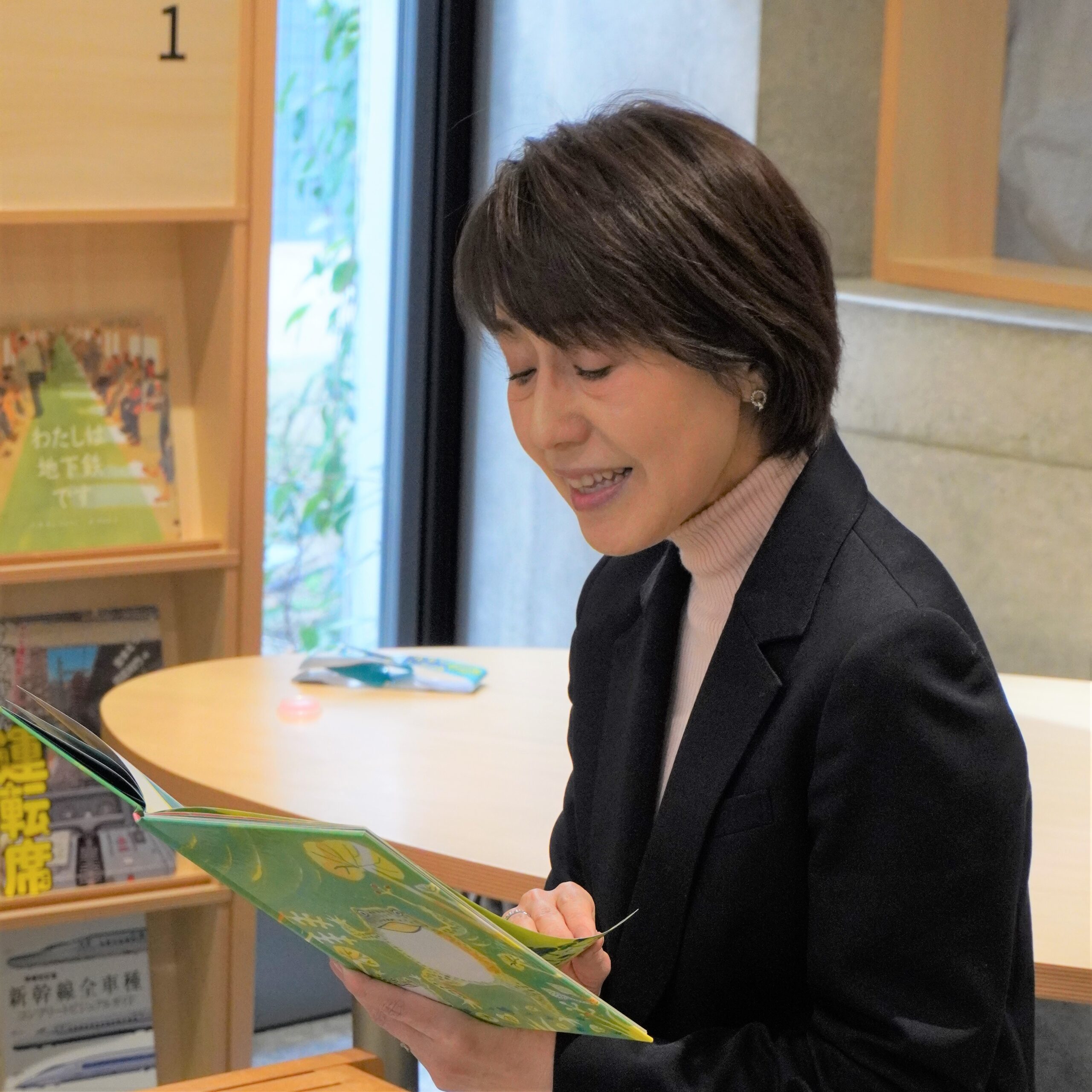 まず1冊目は、迫力満点の絵が印象的な『ちいさなヒッポ』からスタート。お母さんカバがヒッポを一生懸命に守る姿に、子どもたちは一瞬で釘付けになり、みんな真剣な眼差しで見入っていました。続いては「日本のアンデルセン」と呼ばれた久留島武彦さんの『弾きがえる』。その不思議な物語の世界観に、会場の誰もがぐいぐいと引き込まれていきました。そして最後は、ネズミがライオンの国に引っ越すお話『ライオンのくにのネズミ』。自分とは違う言葉や文化、社会を知ること、そして分かり合うことの大切さを、絵本を通して優しく伝えてくれる時間となりました。