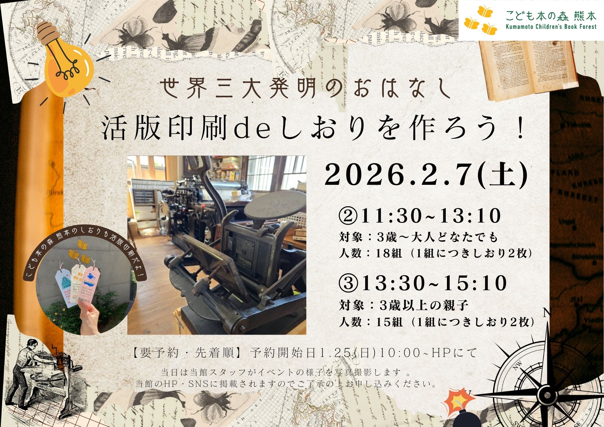 【予告】[2/7(土)]「世界三大発明のおはなし 活版印刷deしおりを作ろう!」開催のお知らせ