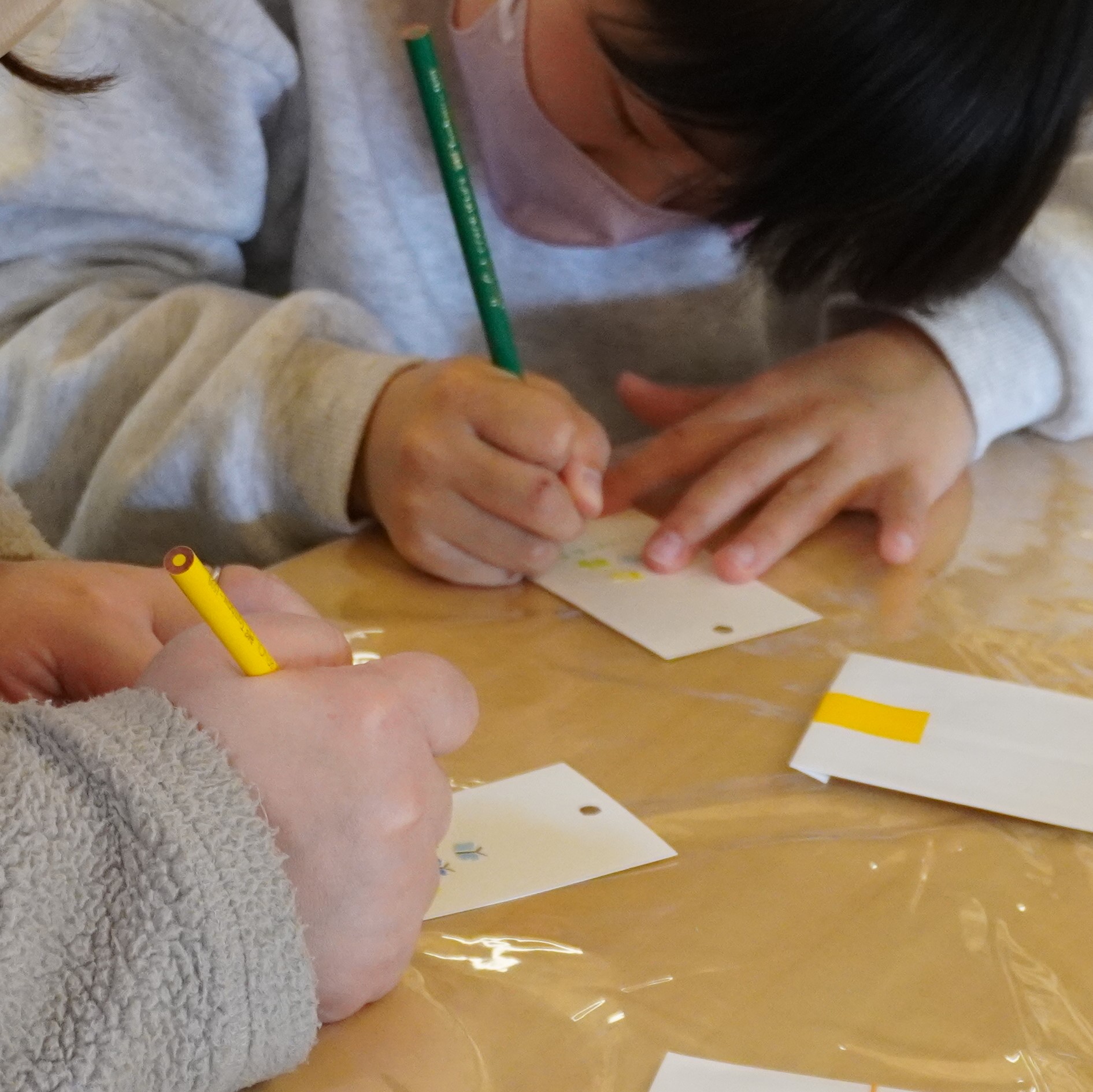 また、印刷前の台紙に色鉛筆で、活版コードが映えるような模様をつけて、オリジナルのしおり作りを楽しんでいる子もいました。