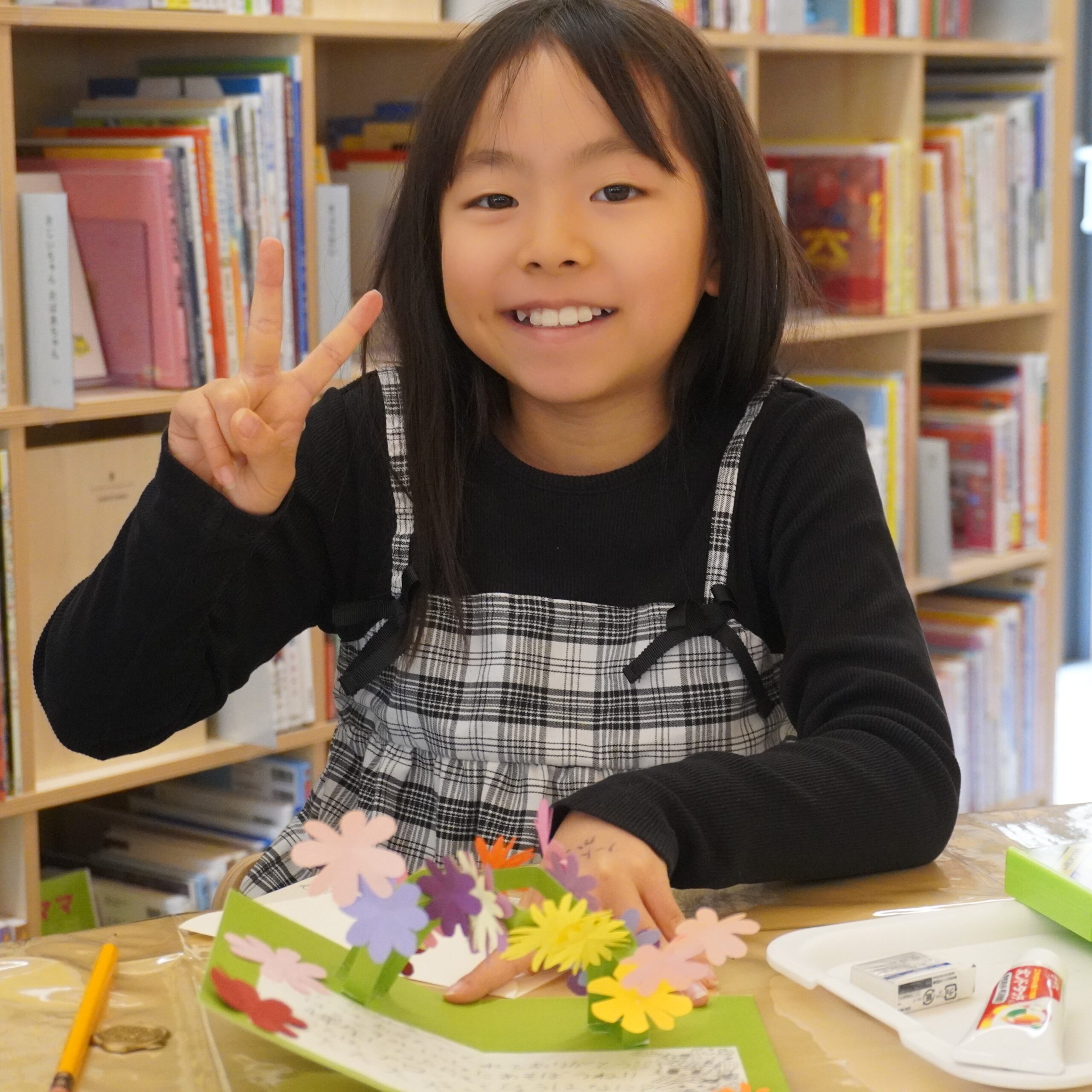 こども本の森 熊本では、3/7(土)に「春の手紙~ありがとうをとどけよう!」を開催しました。新しい季節を前に、大切な人への感謝の気持ちを込めて、ポップアップのメッセージカードを作りました。